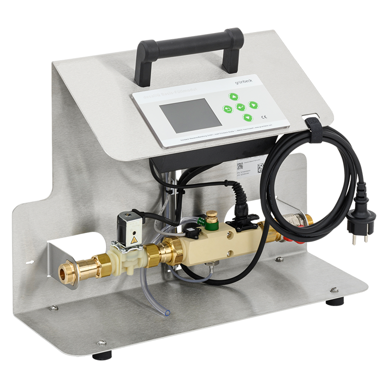 Damit stets gewährleistet ist, dass optimales Wasser im Heizwasserkreislauf fließt, empfiehlt Grünbeck bei der Erstbefüllung bereits vollentsalztes Wasser zu verwenden. Die bewährte Mischbettpatrone desaliQ:MB9 bietet sich ideal zur Erstbefüllung an. Dank des neuen desaliQ Basis- Füllmoduls ist diese so komfortabel wie noch nie! Es dient nicht nur der optimalen Überwachung und Steuerung des Füllvorgangs für eine gleichbleibend exzellente Qualität des Heizwassers, sondern das desaliQ Basis-Füllmodul denkt darüber hinaus selbst mit! Die intelligente Steuerung schaltet den Befüllvorgang automatisch am Kapazitätsende der Patrone eigenständig ab.