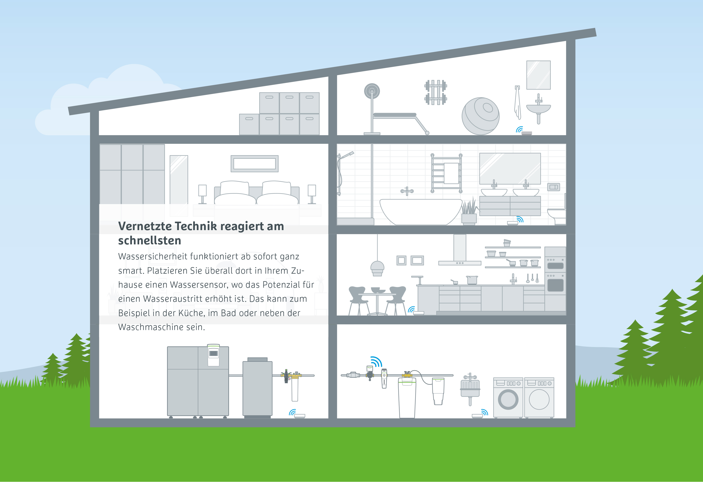 Stellen Sie sich vor, Ihr Zuhause wäre jederzeit vor unerwarteten Wasserschäden geschützt – selbst dann und dort, wo Sie es nicht überwachen können. Fehlfunktionen an Haushaltsgeräten, ein tropfendes Rohr oder gleich eine geplatzte Leitung, die in Nullkommanichts den Boden flutet. Mit der neuesten Generation des Leckageschutzes protectliQ brauchen Sie sich über solche Szenarien keine Sorgen mehr zu machen. Eine Installation direkt nach der Wasseruhr und bis zu acht Funksensoren, die Sie beliebig im Haus verteilen, bilden ein zuverlässiges Sicherheitsteam, das auf die Erkennung von unerwünschtem Wasseraustritt geschult ist.