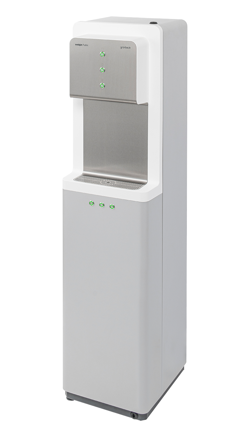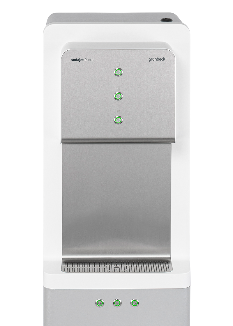 Der sodajet Public ist die hygienisch sichere, robuste und barrierefreie Lösung für eine zuverlässige Tafelwasserversorgung. Besonders geeignet ist der Wasserspender für Aufstellorte mit hohen Anforderungen wie Pflegeeinrichtungen, Schulen oder Werkstätten. Als praktische One-Box-Lösung vereint er alle Bauteile in einem Gerät und bietet Platz für jede marktübliche 10-kg-CO2-Flasche. Seine benutzerfreundliche Bedienung und hohe Leistungsfähigkeit garantieren jederzeit gekühltes, frisches Wasser – still, medium oder sprudelnd.